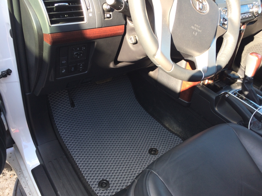 EVA коврики для автомобиля Toyota Land Cruiser Prado 150 2009 - 2013 — это лучший выбор. Покрытие из этого ячеистого полимерного материала покупают сотни автолюбителей. Коврики из ЭВА долговечные, прочные, красивые. Сроки службы изделий — от 5 лет. Они не выделяют вредных веществ, ничем не пахнут. Коврики защищают пол автомобиля от грязи и влаги, а салон — от лишней пыли.
